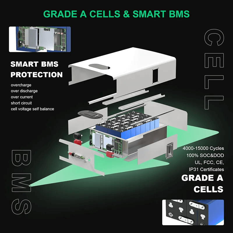 | Lewensiklusse (80% DOD, 25°C) | 5000 siklusse | 5000 siklusse | 5000 siklusse |