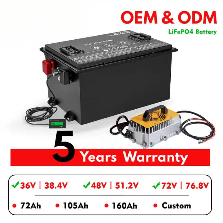 Ingeboude BMS, geïntegreerde BMS om temperatuur, spanning, stroom te monitor om oorspanningsbeskerming, oorstroombeskerming, oortemperatuurbeskerming, kortsluitingbeskerming, omgekeerde polariteitsbeskerming te realiseer.