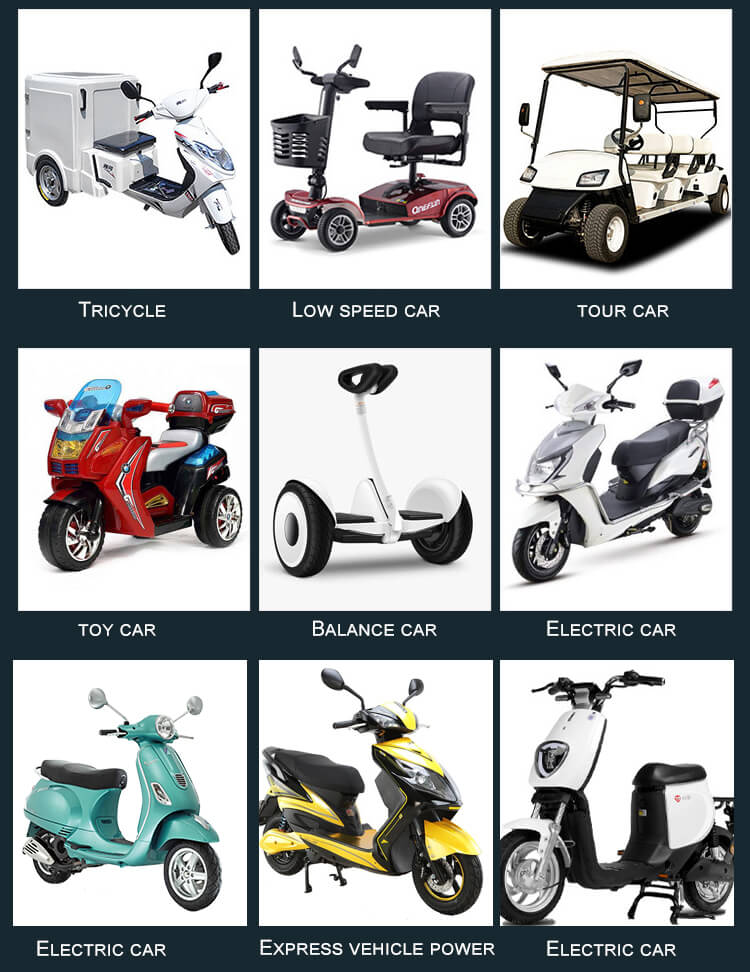 Die Lithium Battery Pack word wyd gebruik in kommersiële busse en busse Elektriese motors, elektriese busse, gholfkarretjies/elektriese fietse, bromponies, RV's, Marines, waens, karavane, rolstoele, Elektroniese vragmotors, elektroniese vee, vloerskoonmakers, elektroniese stappers, mobiliteitsbromponies , elektriese motorfietse, driewiele, elektriese rolstoele, kinders ry op motors, selfdoen-kraggereedskap ens.