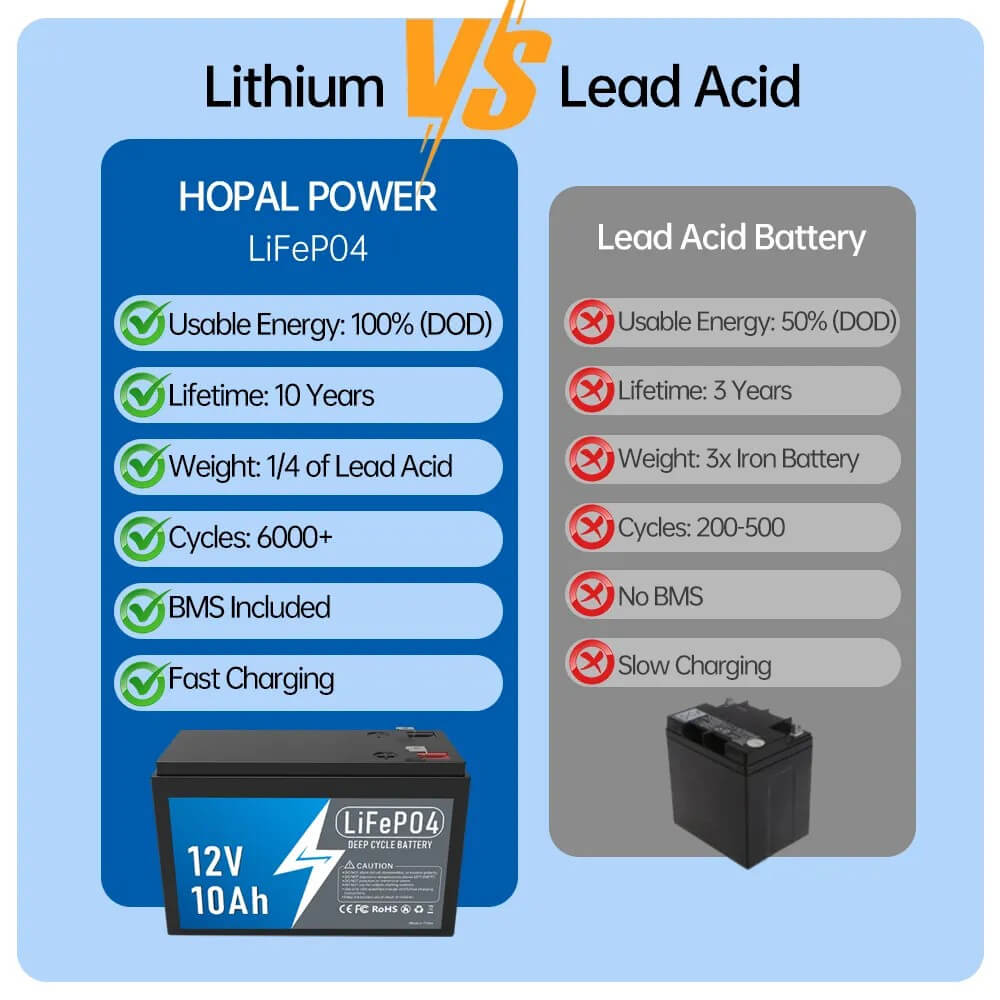 A: Our batteries are made with Grade A LiFePO₄ cells, providing over 6000 cycles at 80% DoD and a lifespan of up to 10 years.
